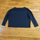 This is a pre-owned ALLSAINTS women's black long-sleeve tee, size Medium, made in Turkey. It features a boat neck and a relaxed fit. The fabric composition is 63% polyester, 34% viscose, and 3% elastane. Visible measurements indicate an approximate chest width (pit to pit) of 26 inches and a length of 25.5 inches from the back collar to the hem. Kindly note: Items are not washed and may have scents (detergent or used clothing). Any stains, rips, or defects are clearly shown in the photos, and actual measurements are included there as well. Orders ship within 1–3 business days. If you have any questions or issues with your order, feel free to message me — I’m happy to help!