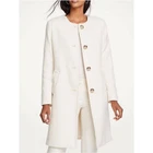 Women's Ann Taylor Wool Blend Jewel Neck Ivory Coat Knee Length sz L Minimalist Cleanly structured and impeccably tailored, our wool-infused coat is a welcome addition to any closet. Jewel neck. Long sleeves. Button front. Vertical on-seam pockets. Lined Materials: shell: 60% polyester, 27% wool, 6% acrylic, 7% other fibers lining: 100% polyester Measurements: pit to pit: 22” measurements: 39”