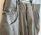 Hi-tech outerwear pants 10,000 mm waterproof rating Velcro on back pockets Gray with green liner Zip with double clasp closure 3 front pockets, adjustable Velcro Size: S Waist: 26” Inseam: 29” Rise: 9” Very good condition minor wear to bottom cuffs