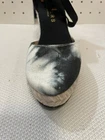 Step out in style with Ateliers Rains Tie Dye Wedge Sandals, a blend of comfort and chic fashion. The black and white tie-dye pattern adds a playful twist to your everyday wear, fitting for a variety of occasions from a casual day out to a cocktail party. The breathable canvas lining ensures your feet stay cool and comfortable, while the sturdy rubber outsole provides durable wear. These size 8.5 espadrilles feature a supportive ankle strap and a high wedge heel that gives you a stylish lift. Crafted in Spain, the cotton and fabric upper materials are accented with a strap design that complements the preppy city-ready theme. Embrace the versatility of these Ateliers Rains sandals, perfect for the fall, spring, or summer seasons. Great condition- Smoke free home- Thanks for stopping in check out my online thrift stuff added daily much love Shelly J 💚