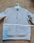 Elevate your wardrobe with this stylish Women's Athletic Works Quilted Jacket. The jacket features a quilted rib collar and a full zipper closure, making it a perfect choice for any occasion, whether it's for travel, party/cocktail, casual, formal, workwear, or business. The collared jacket is made of 58% cotton and 42% polyester, and it's machine washable for easy care. This gray, short jacket has long sleeves and an athletic fit, providing both comfort and elegance. It's a solid pattern that can be worn in the fall, winter, and spring seasons, and it's perfect for those who love a quilted design. Don't miss the chance to add this jacket to your wardrobe and make any outfit look stylish. Condition is NEW with Tags. Color Gray Size Small 4/6 Shipping with USPS first class mail Package. Fast & Free Shipping. Envio rapido a PR y EU desde Florida US.