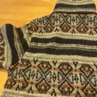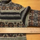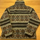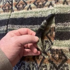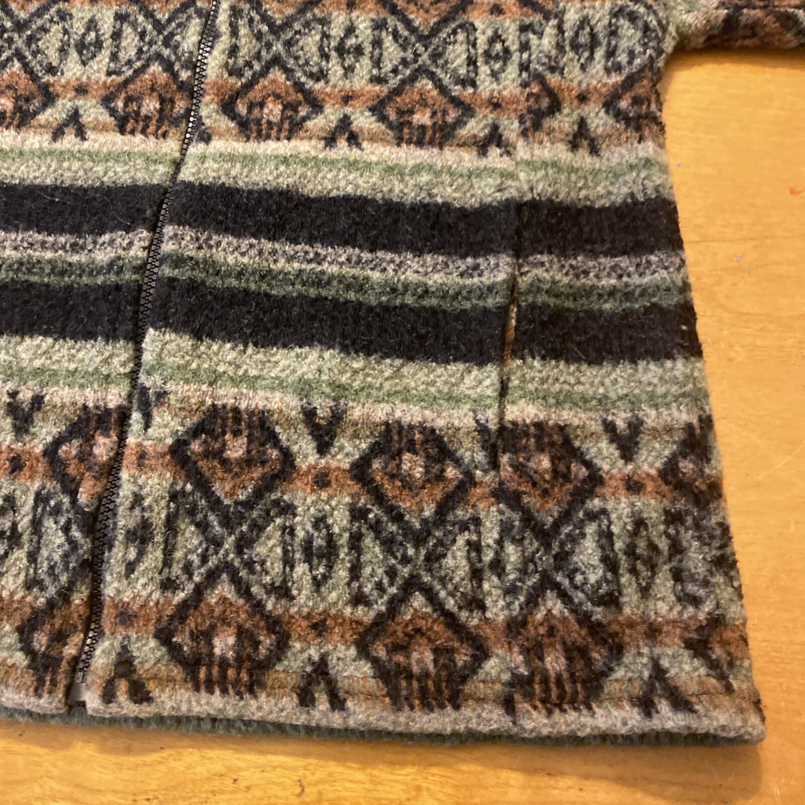 This women's jacket is a medium-sized Bear Ridge full zip jacket made in the USA with a vintage Aztec design. The jacket features a fleece fabric type, full zip closure, and a colorful multicolor pattern. It is a basic jacket style with a Western theme, perfect for adding a touch of Americana to your wardrobe. The medium size and regular fit make it a versatile piece for various occasions. This is a pre owned jacket please look over pictures and measurements