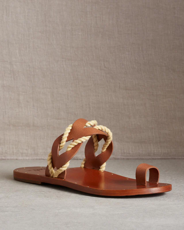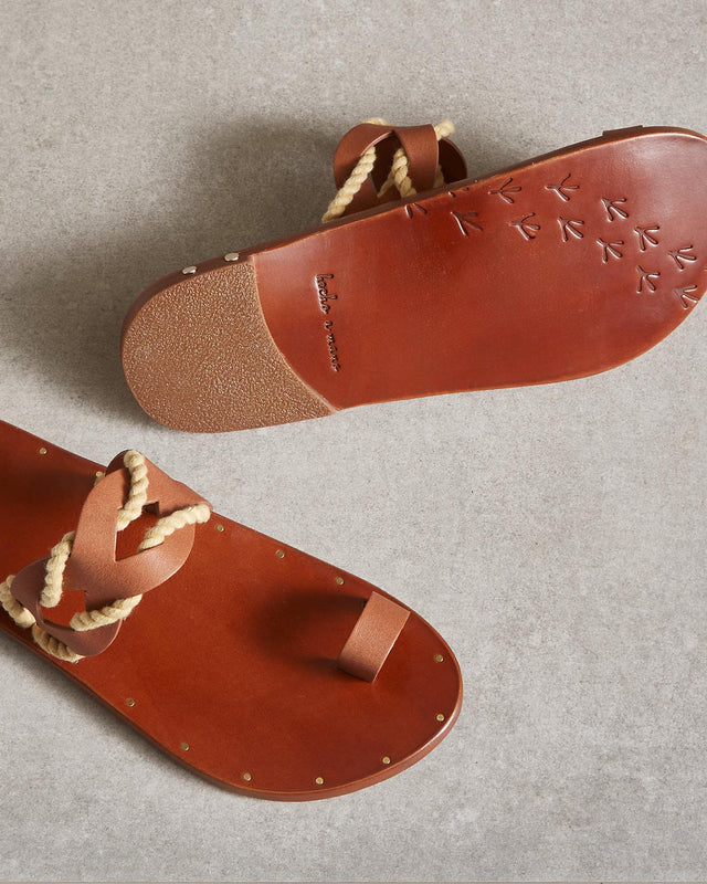 These handcrafted sandals feature rope detail, a toe loop and studs around the insole. Leather.