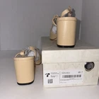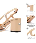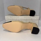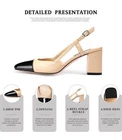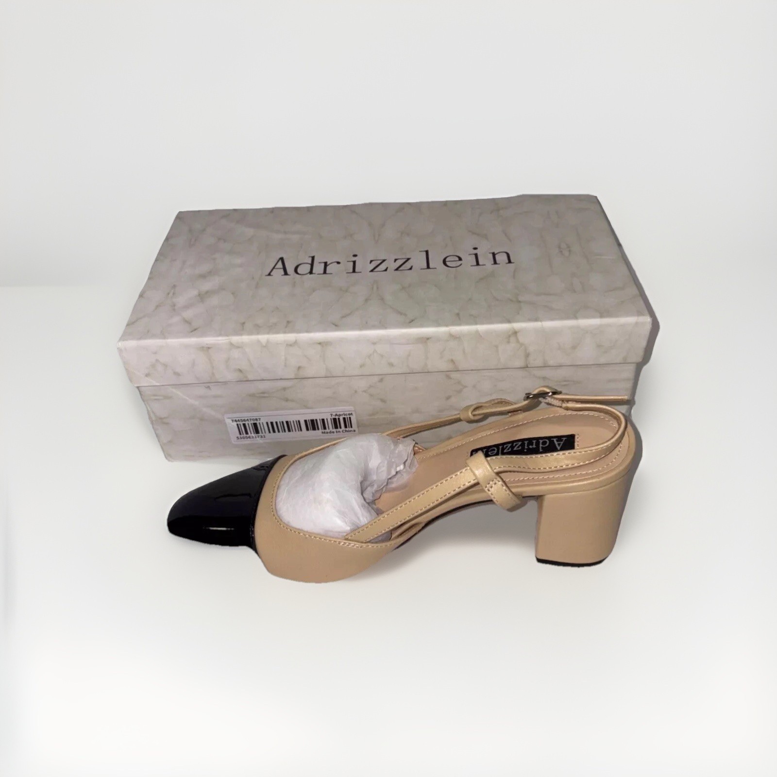 ***Small blemish on back of left heel** see pic - Heel height: 2.5 inches/6.5cm - Block heel - Feature Two tones Black/Beige, adjustable strap - Cap toe - Sole material: Rubber - Outer material: Faux Leather - Closure type: Pull-On Perfect for business, weddings, church, brunch, or any occasion where you want timeless elegance.