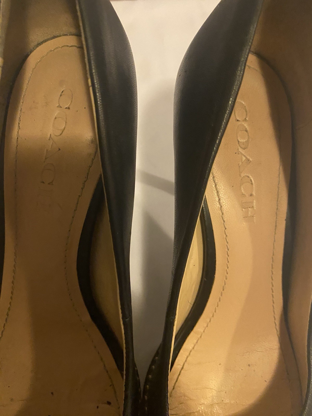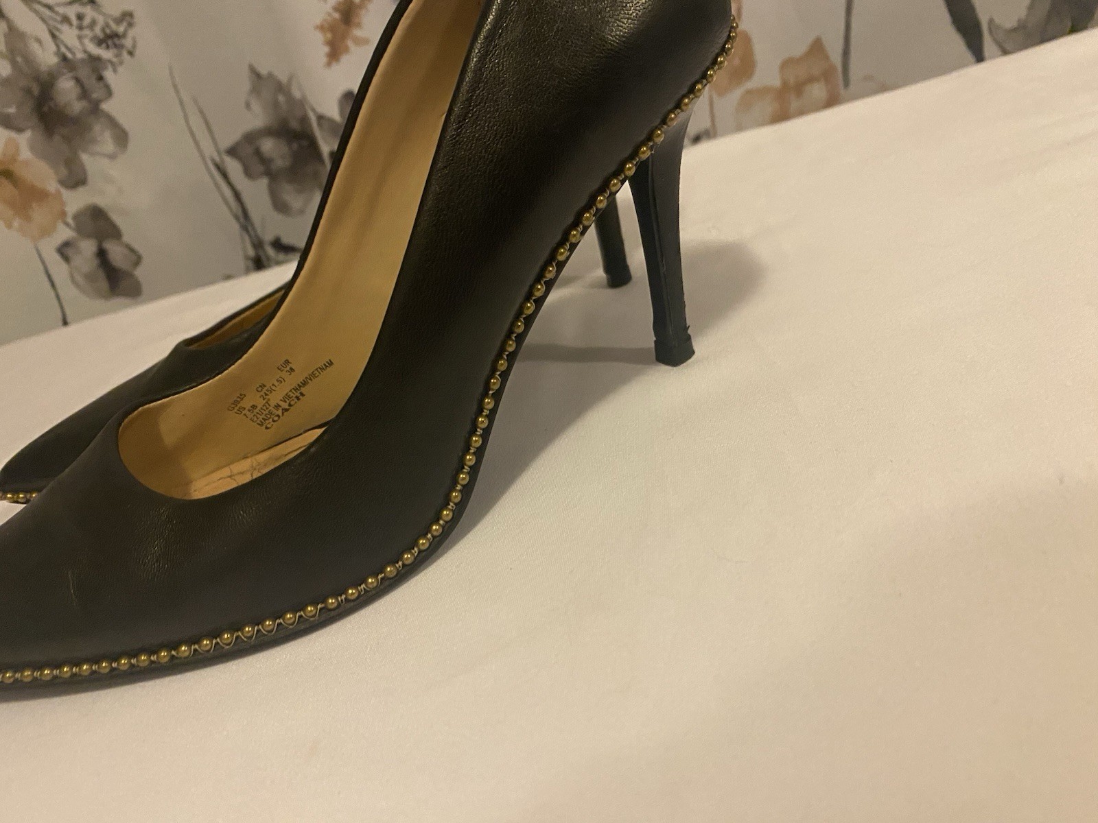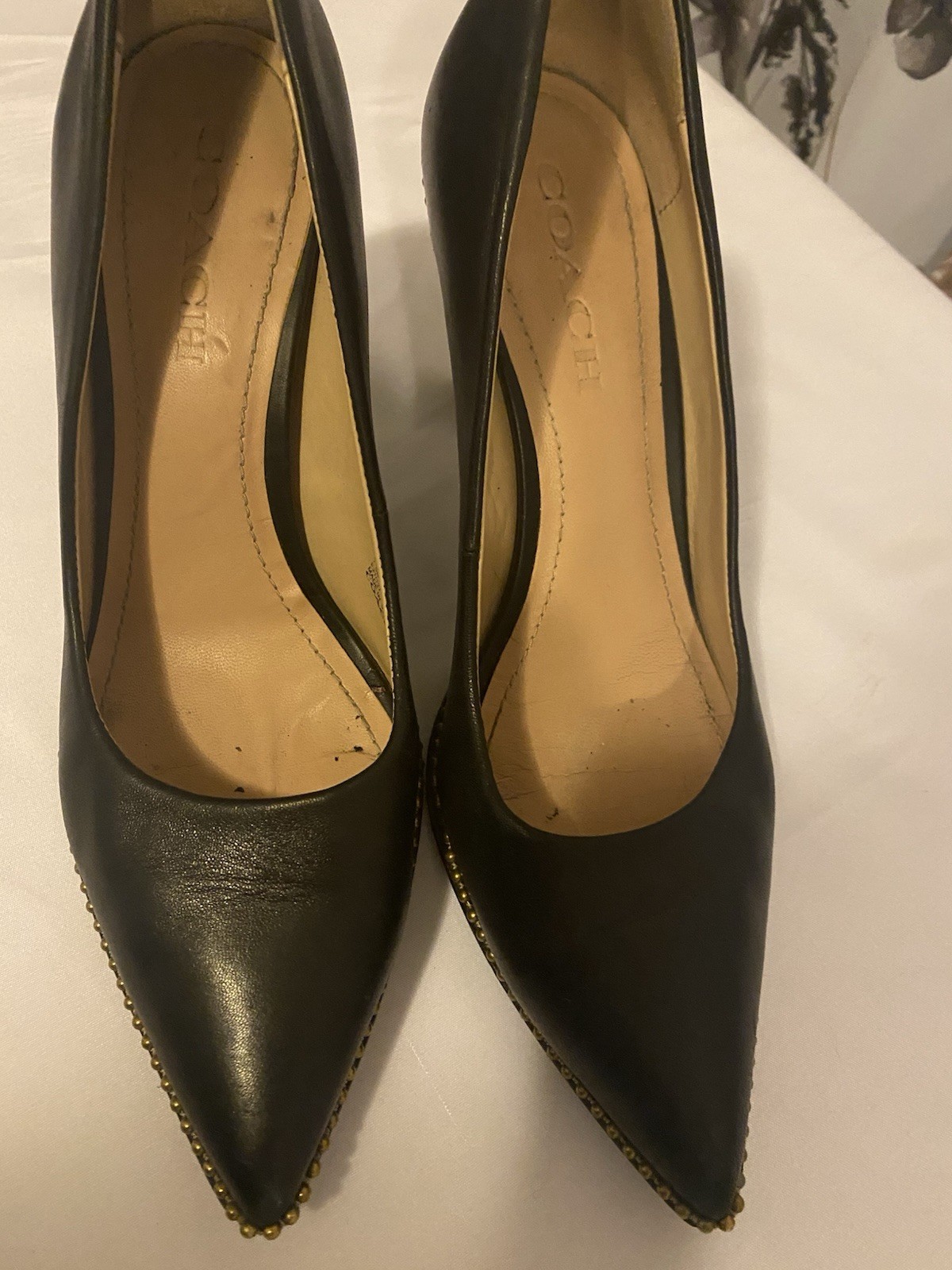 Women’s Black Leather Coach Heels With Pointed Toes Size 7.5