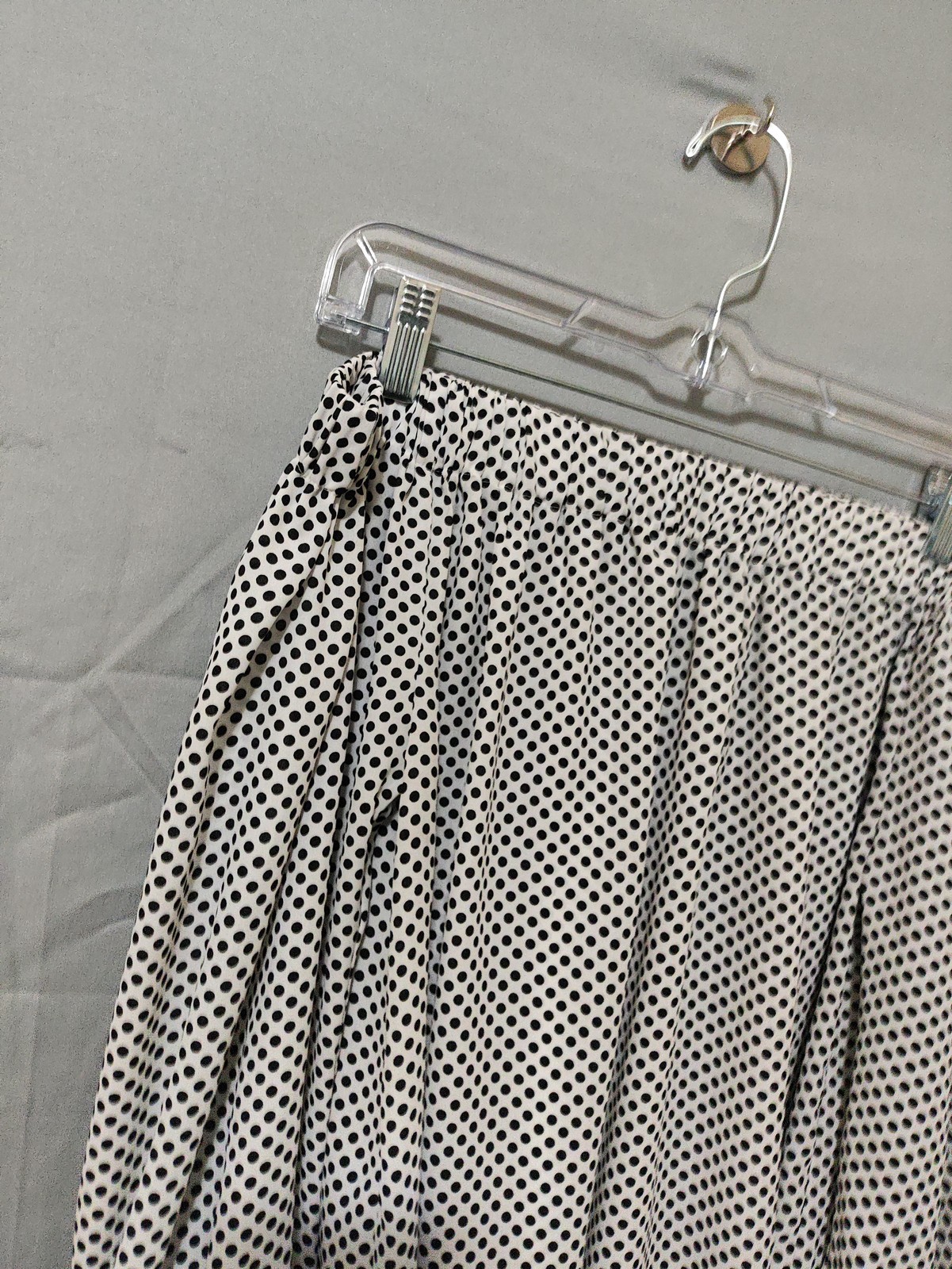 Express Blouse Womens Medium Black White Polka Dot Off Shoulder Long Sleeve Top Condition: Gently worn, no visible flaws Black and white polka dot pattern throughout Elastic off-shoulder neckline for a versatile look Long sleeves with tie details at the cuffs Flowy, relaxed fit for comfort and style Brand: Express Made in Indonesia Tag size: Medium (Womens) All brand tags and size markings shown in photos Approximate flat measurements shown in photos for reference Great statement piece for casual or evening wear