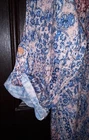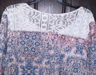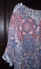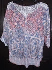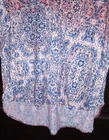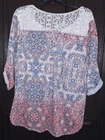 Elevate your wardrobe with this beautiful unbranded women's blouse. The ivory color with blue and pink floral design is perfect for any occasion. Made of a cotton polyester blend, this blouse features a V-neckline, 3/4 roll tab sleeves, and a lace back for added accent. The relaxed fit of this blouse makes it comfortable to wear and the lace fabric type adds a touch of elegance. This blouse is a great addition to any basic wardrobe and is available in size L. Tote #50