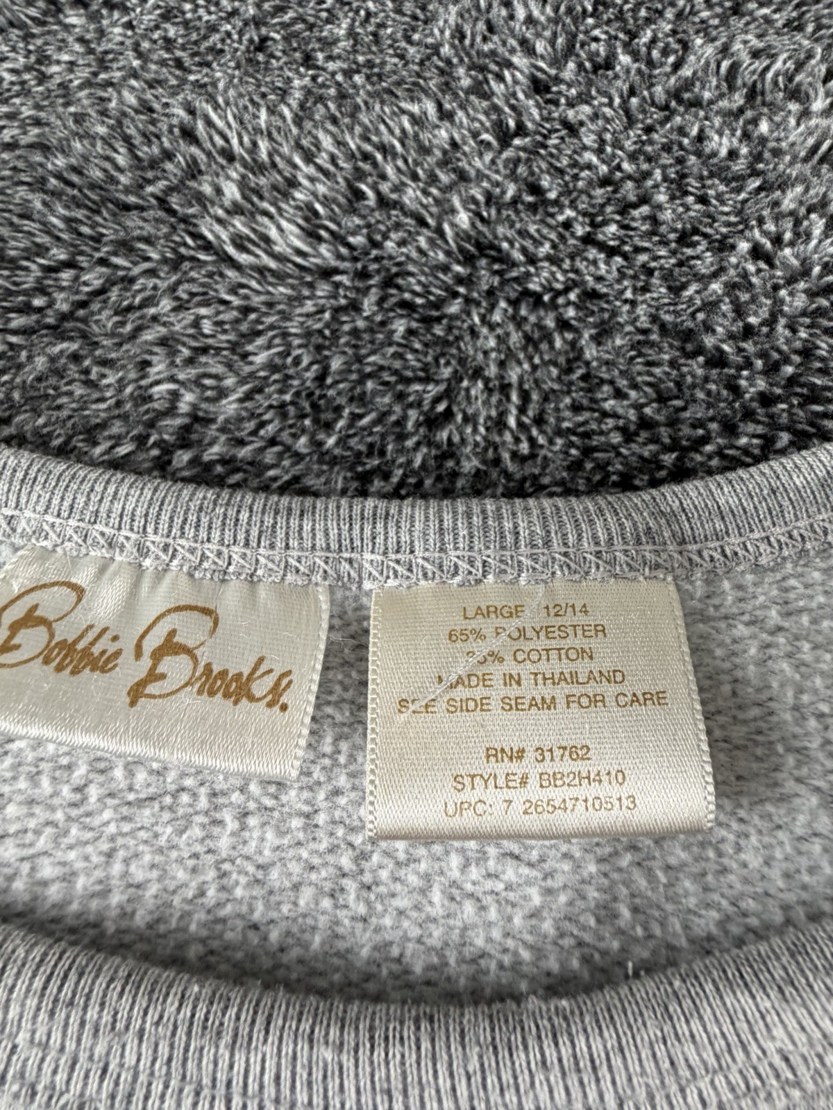This Women’s Bobbie Brooks Christmas Crewneck sweater is a festive and cozy addition to your holiday wardrobe. The gray sweater features a classic crew neck design, perfect for celebrating the Christmas season. The Christmas theme adds a touch of holiday cheer to this stylish and comfortable piece. The arm cuffs have some pilling as pictured.
