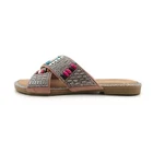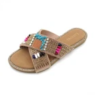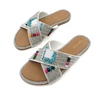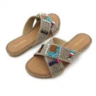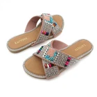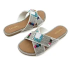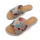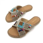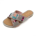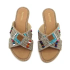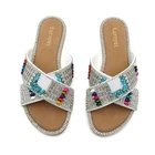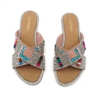 $ 8.5Women's Crystal Rhinestone Summer Flat Sandals Beaded Slip-On Slides Multi-Color