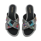 $ 8.13Sparkly Rhinestone Glitter Slide Sandals for Women with X-Band Design