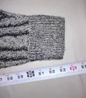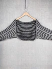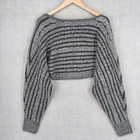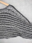 Womens Bohemian Shrug Medium Gray Black Chunky Cable Knit Cropped Batwing Sweater Condition: Gently worn, no visible flaws noted Features a bold striped design with cable knit pattern throughout Cropped body with wide neckline and batwing balloon sleeves Ribbed cuffs and hem accent the chunky knit texture Color: Heather gray and black Approximate measurements (as shown in photos): - Sleeve length (center back to cuff): 25 inches - Cuff to cuff width (wingspan): 49 inches - Body width at hem: 17 inches Midweight and cozy sweater, ideal for layering Size: Medium (fits true to size based on measurements) No visible brand or material tag