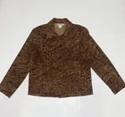 Women’s BRIGGS Blazer Jacket in a size medium A faux suede material in patterned tan/brown color Made in USA, 97% polyester and $3 spandex Collared, button up blazer with thin shoulder pads Preowned in great condition no noticeable flaws however please note there is a slight cigarette smoke smell despite being washed, I imagine the smell tends to cling more to this material Otherwise will be packaged well, freshly washed and free of pet hair 10% of sale will benefit The Abuse Crisis Center through eBay charities