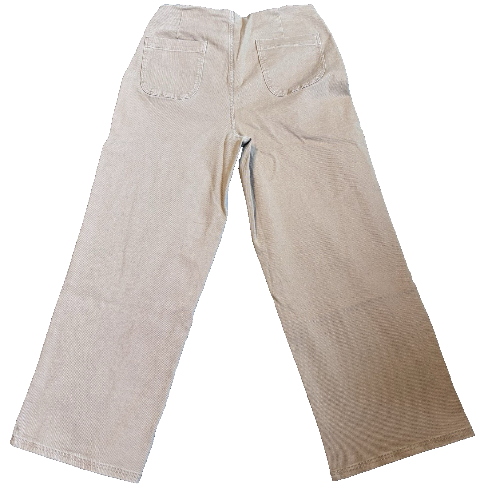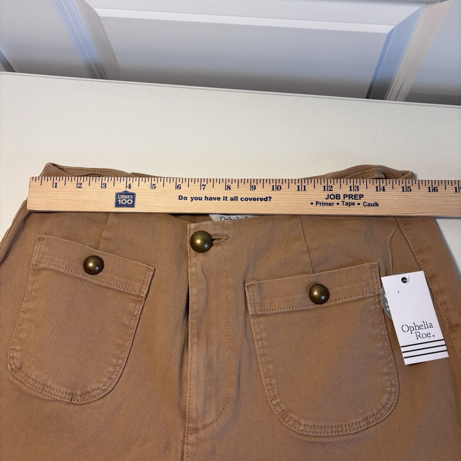 Ophelia Roe Casual Wide Leg Pants Trouser in brown, size 12, are a stylish and comfortable addition to any woman's wardrobe. Made from a blend of spandex and cotton, these pants feature a zip and button closure, mid-rise, and 27-inch inseam. With a casual style and comfortable fit, these pants are perfect for everyday wear during all seasons. They also have elastic waist and back pockets, making them both practical and stylish. Easy to care for, these pants are machine washable for added convenience. Please see pictures for measurements.