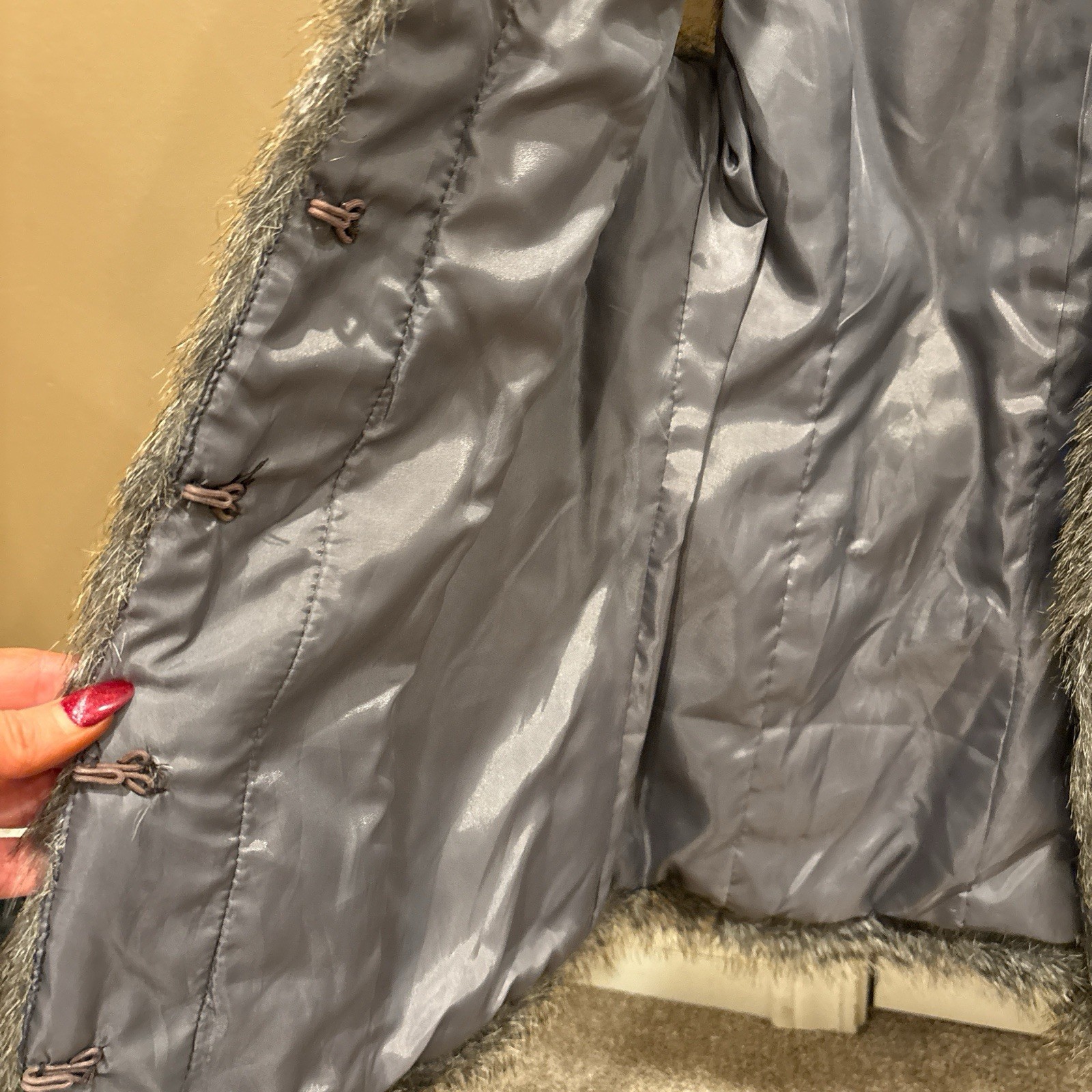 $ 120.39NEW ZARA RICH FAUX FUR LADIES WARM COAT GREY BEIGE COLLAR WOMEN JACKET SIZE M