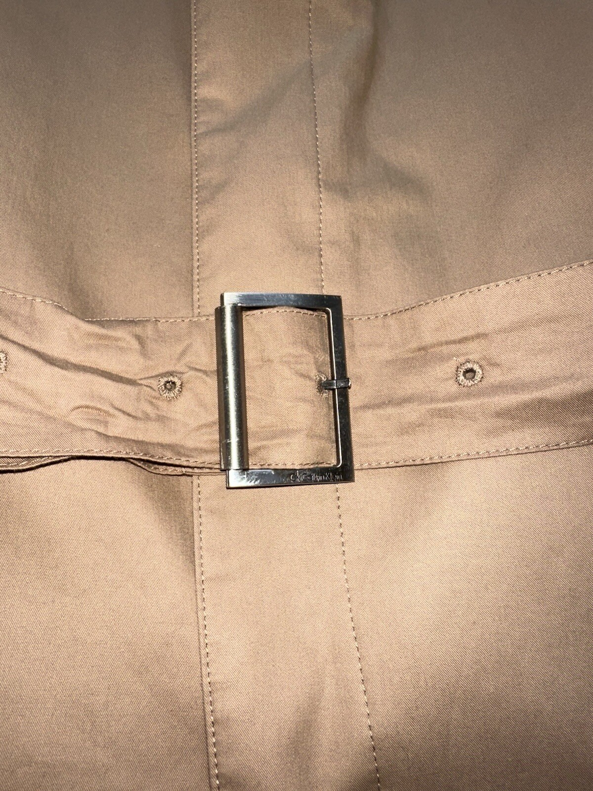 Elevate your wardrobe with the timeless elegance of a Calvin Klein Trench Coat. Designed for women who appreciate a blend of classic style with modern sensibilities, this beige, belted long coat offers a sophisticated silhouette. The size 10 coat is crafted from durable polyethylene with a polyester insulation layer, ensuring both warmth and longevity. The classic collared neckline and long sleeves provide a structured, yet comfortable fit for everyday wear or chic occasions. Attention to detail is evident in the coat's canvas fabric type, seamless button-up closure, and practical pockets. Its regular fit ensures ease of movement while maintaining a sleek profile. With its no-pattern design and designer theme, this Calvin Klein Trench Coat is a versatile addition to your outerwear collection, manufactured in Tunisia with the quality and prestige you'd expect from the brand. Note: This item is used so please don’t expect perfection. May have minor marks and will need a good wash in my opinion. Generally in good used condition. Any Q’s please don’t hesitate to get in touch. I’d be super grateful if you could save me as a seller, you’ll receive regular updates and offers. Thank you so much for your continued support.