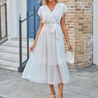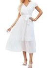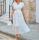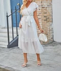 Get ready to embrace the bohemian vibe with this stylish and comfortable dress. The perfect blend of elegance and casual, this A-line dress comes in a beautiful floral pattern with a V-neckline and short sleeves. The ruffle accents and flowy wrap design add a touch of whimsy to your look. Made of polyester and lined for extra comfort, this dress is perfect for summer. Whether you're going out for a lunch date or attending a casual event, this dress is sure to make a statement. The Jacquard-dot-white color combination and long dress length provide a timeless look that will never go out of style. So why wait? Add this Fashion Women's Bohemian Floral Wrap V Neck Ruffle A-Line Dress to your wardrobe today and channel your inner boho chic!