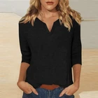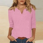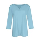 Women's V-Neck 3/4 Sleeve Tops Casual Solid Color T-Shirts Summer Daily Blouse Features: 1. It is made of high quality material, durable and suitable for your daily wear. 2. It's cool to wear. 3. Comfortable and pleasant to wear at home or at work. 4. This lightweight top is perfect for those cozy days! 5. Keep improving to make your clothes more comfortable. Product Information: Season: Summer Gender: Female Occasion: Home, Everyday Material: Imitation of cotton Style: Casual, Fashion Sleeve Length: 3/4 Sleeve Fit: Fit to size Thickness: Standard How to wash: Hand wash in cold water, hang or dry You will get: 1PC Women's Tops Size Bust Shoulder Sleeve Length S 96cm/37.80'' 39cm/15.35'' 43cm/16.93'' 65cm/25.59'' M 102cm/40.16'' 40.5cm/15.94'' 44cm/17.32'' 67cm/26.38'' L 108cm/42.52'' 42cm/16.54'' 45cm/17.72'' 69cm/27.17'' XL 114cm/44.88'' 43.5cm/17.13'' 46cm/18.11'' 71cm/27.95'' XXL 122cm/48.03'' 45.5cm/17.91'' 47cm/18.50'' 73cm/28.74'' XXXL 130cm/51.18'' 47.5cm/18.70'' 48cm/18.90'' 75cm/29.53''