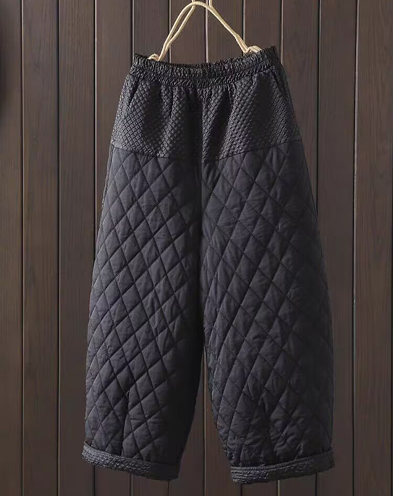 $ 26.2Womens Quilted Winter Warm Long Pants Elastic Waist Loose Harem Casual Trousers