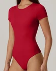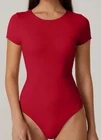 Elevate your wardrobe with the chic and versatile QINSEN Women's Crew Neck Short Sleeve Bodysuit. Perfect for a range of occasions, from casual outings to workwear, this basic t-shirt style bodysuit is designed to flatter with its slim fit silhouette. The rich red hue adds a pop of color, while the double-lined construction ensures comfort and durability. Crafted from a blend of 75% polyamide and 25% elastane, this bodysuit promises a stretchy fit that moves with you. The classic fitted sleeves and crew neckline contribute to its timeless appeal, making it an essential piece for any season. Complete with a discreet button closure, it's an understated yet fashionable addition to your clothing collection.