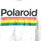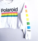 Polaroid Crop Top T Shirt Med Long Sleeve White Half Tee Stripes Cotton Festival very nice pre-owned condition, no tears, holes, stains, please see photos for further info approxx measurements: underarm to underarm across chest, 19" length-middle neckline/back to hem, 20"