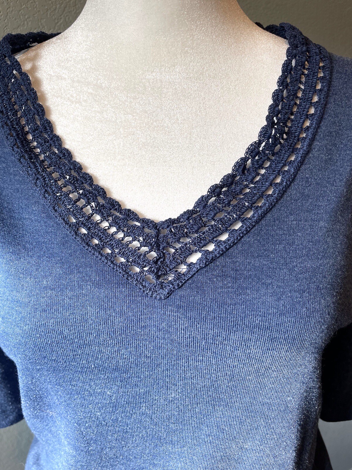 This Women's Cute blue top is a stylish and versatile addition to any wardrobe. Made from comfortable cotton fabric. this blouse features a flattering V-neckline and short sleeves, perfect for the warmer seasons of summer, fall, and spring. The solid blue color and basic style make it suitable for various occasions, from casual outings to business meetings, parties, or even travel. The size L ensures a comfortable fit for women looking for a chic and trendy top from the brand Jones New York.