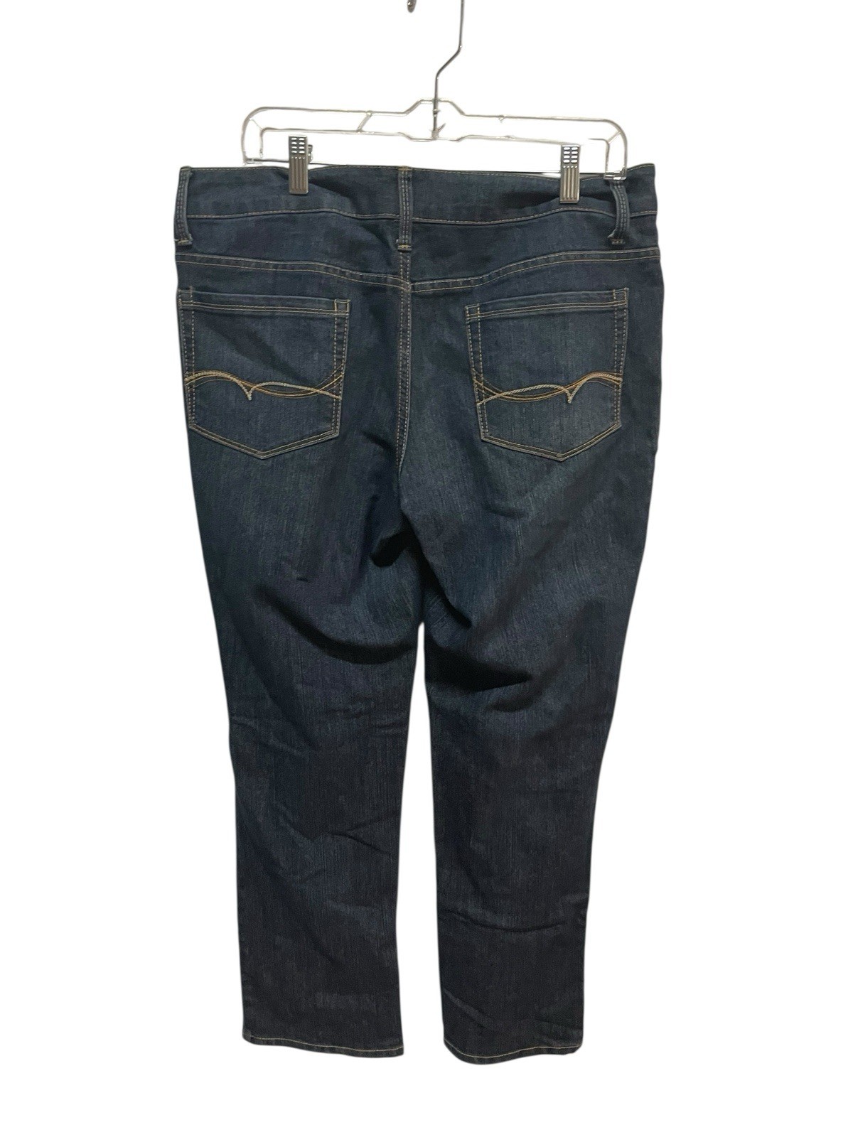 Women's Faded Glory dark wash straight leg denim jeans in a classic, easy-to-wear fit. Mid-rise style with a timeless silhouette that works for everyday casual wear. Clean dark wash with subtle fading and traditional 5-pocket design. Condition: Pre-owned, good condition. No holes or major flaws noted. Straight leg Classic denim Casual core Everyday jeans Timeless basics Dark wash jeans Minimal wardrobe Normcore Classic fit