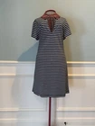 The Sankaty dress is a popular style from Vineyard Vines, known for its comfortable and practical design. Its key features typically include: • Fabric Composition: It's made from a blend of polyester and spandex (specifically 92% polyester and 8% spandex, as shown on the tag). This gives the fabric a bit of stretch, making it very comfortable and easy to move in. It's also known for being quick-drying and having a lightweight, "performance" feel. • Design: The dress is often a simple, pull-on style, making it a versatile option for casual outings. It's commonly sold in various striped patterns, like the navy and white shown in your photo. • Origin: The tag indicates the dress was made in Peru. The name "Sankaty" is a nod to the Sankaty Head Golf Club and Sankaty Lighthouse on Nantucket, a place that Vineyard Vines has often drawn inspiration from for its preppy, coastal-themed apparel.
