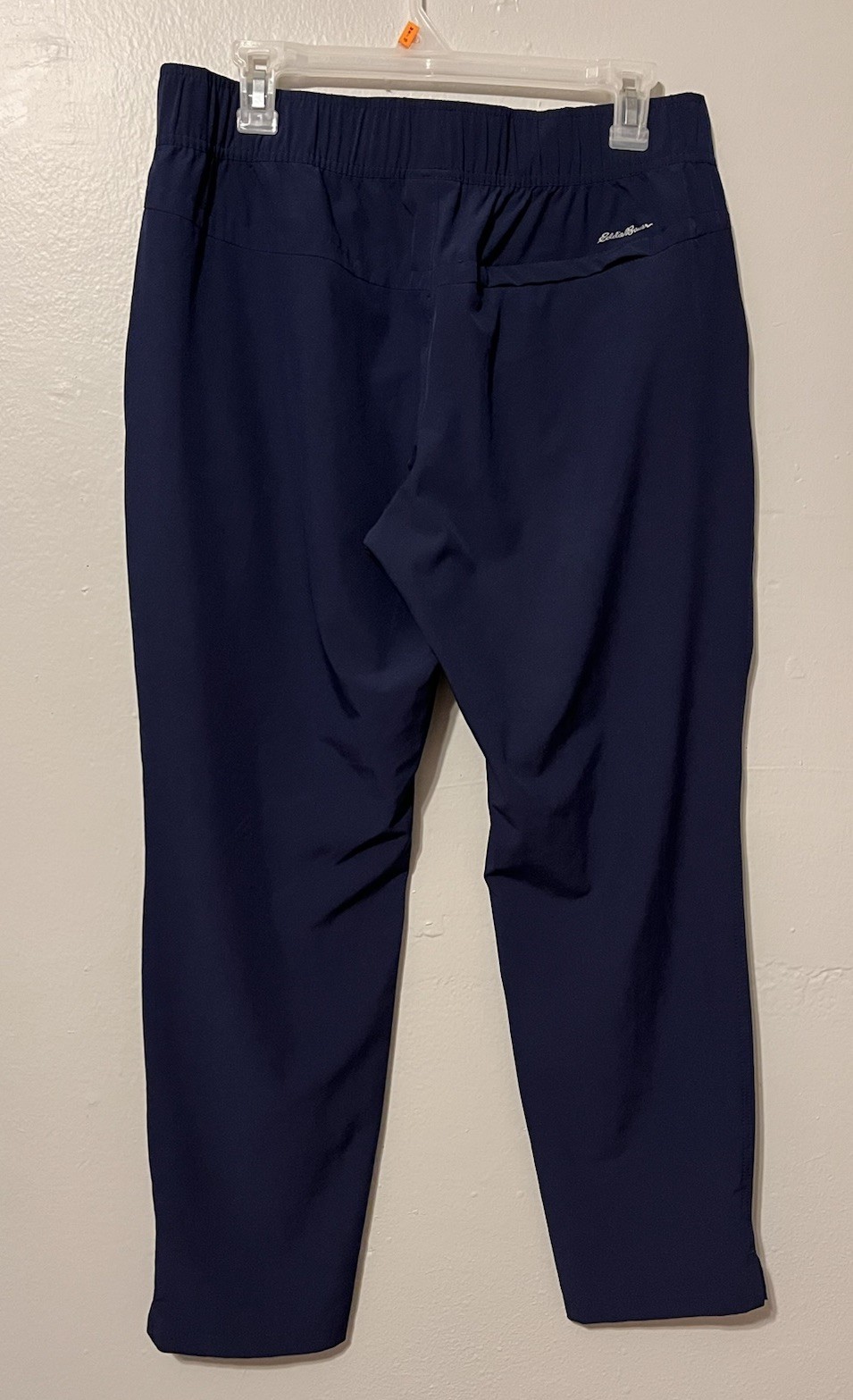 The Women’s Eddie Bauer Traveler Ankle Pants in Blue, size M, feature an elastic waistband for added comfort and flexibility. Made of 86% polyester and 14% spandex, these lightweight pants are perfect for travel and casual occasions. With a mid-rise fit, straight leg style, and flat front design, these athletic pants offer a regular fit for everyday wear. The Eddie Bauer logo accents add a touch of nature-inspired flair to the solid blue color, making them a versatile and stylish addition to your wardrobe for all seasons.