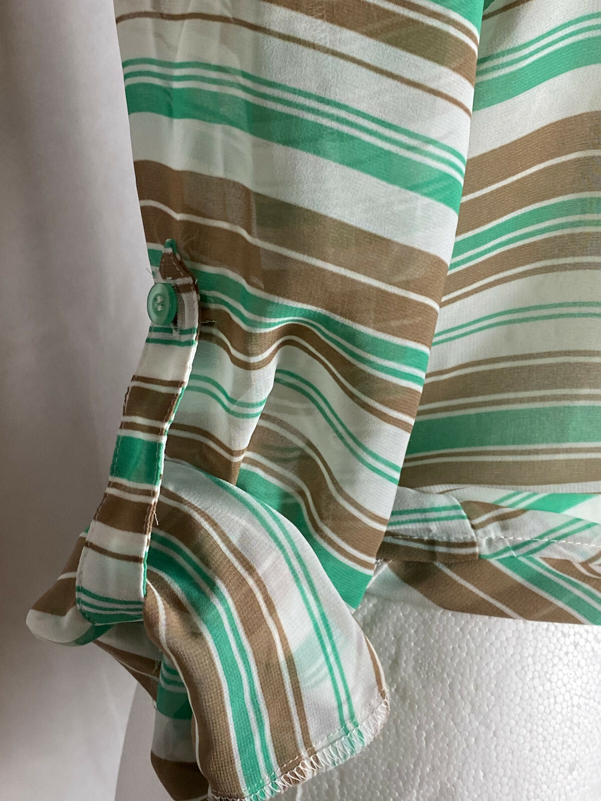 This top is so stylish and comfortable! The knot front adds a cute detail, and the rolled sleeves give it a relaxed vibe. The stripes make it versatile—perfect for casual outings or dressing up. Fits true to size, and the fabric feels great. Love it!