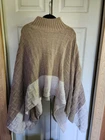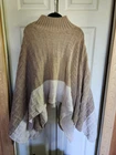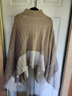 This Women's Emery Rose Beige and Cream Poncho Sweater in size XL is a stylish and cozy addition to any wardrobe. The sweater features a solid beige color, long sleeves, and a knit fabric made of polyester and acrylic. Perfect for casual occasions, this machine washable sweater offers a comfortable fit and a trendy poncho style. Ideal for the winter and fall seasons, this sweater from the brand Emery Rose is a must-have for women looking for a chic and versatile piece to wear.