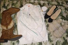 I have this woman's lot of CowGirl Boots, two strap White Sandles, 3 & 1/4th of an inch Black High Heels, Fruit of the Earth Vitamin E Face and Body Moisturizer, And a Medium Sized White Nike Jacket. Cow Girl Boots are size 10 Black High Heels are size 8 Sandles are size 8 Jacket is a Medium FRUIT OF THE EARTH Vitamin E Skin Care cream 2x 4OZ. Moisturizes, Soothes & Protects for softer younger looking skin!
