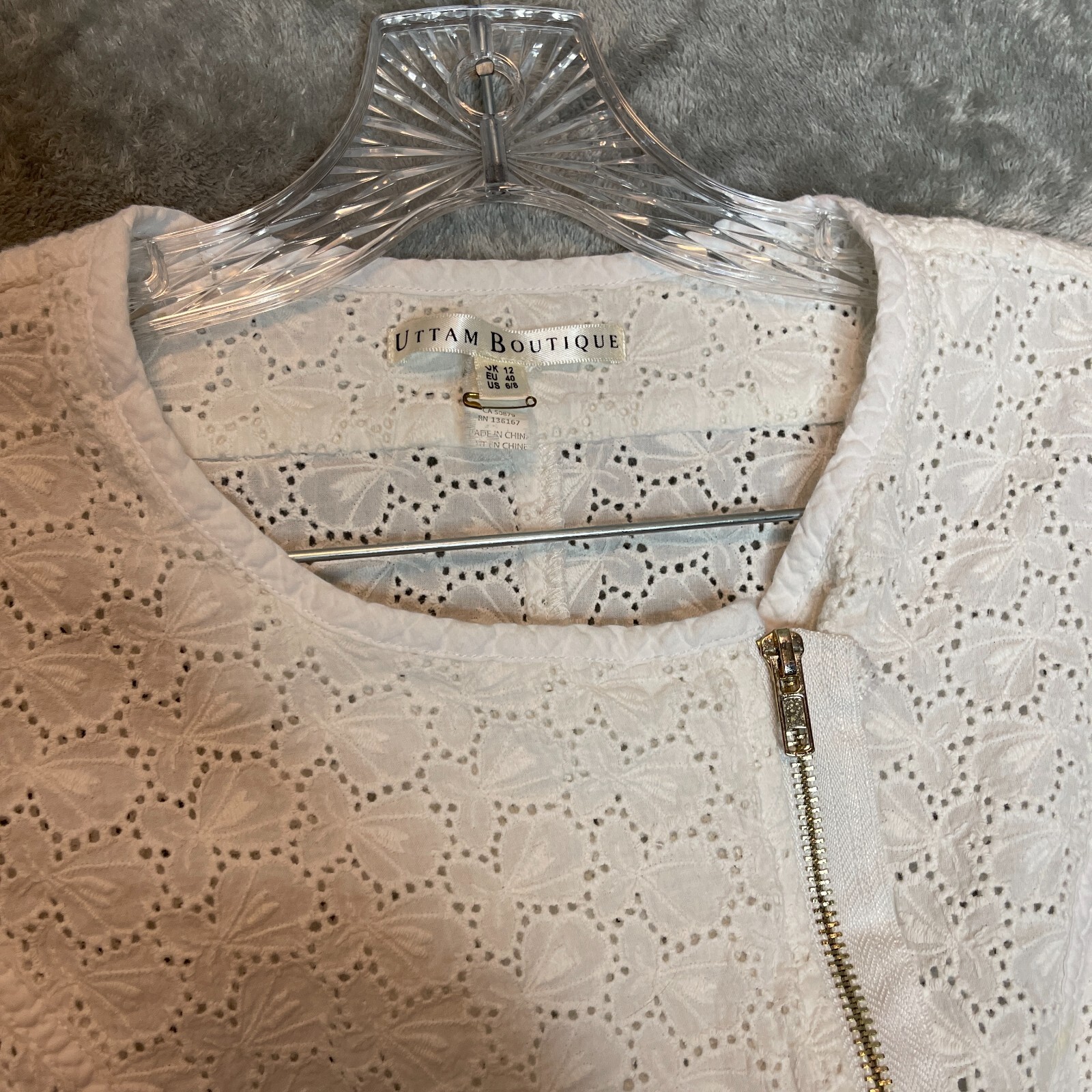 Good Pre Owned condition. There is some staining on the front. Please see photos for details. SUPER FAST SHIPPING!!! We ship next business day! If you aren't happy with your purchase we offer 30 day FREE returns. No questions asked! Women Classic Coquette Floral Eyelet Cropped Zip Lightweight See Thru Top 6