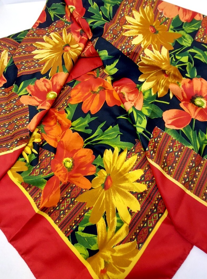 Women's Floral Red Yellow Scarf Square 33" Bandana kerchief scarves