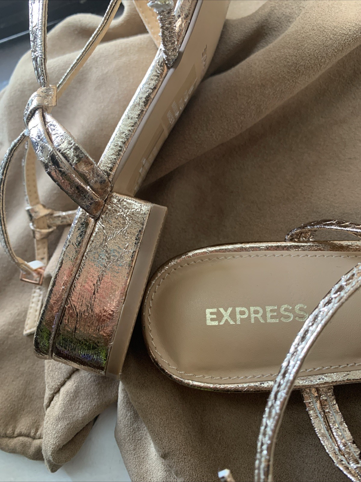 The product is a new pair of women's gold flat strap up sandals in size 6. These stylish sandals feature a metal theme and are designed with straps for a secure fit. The gold color adds a touch of elegance to any outfit, making them a versatile and trendy choice for any wardrobe. Perfect for a casual day out or a night on the town, these sandals are a must-have for any fashion-forward woman looking to elevate her footwear collection.