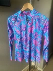 This Polo Golf women's polo shirt is perfect for any athletic activity, including golf, pickleball, and tennis. The shirt features a beautiful multicolor paisley pattern, adding a touch of style to your sports wardrobe. It has a long sleeve design and a 1/4 zip for easy wear, making it comfortable and versatile.The shirt is available in size small and is a regular fit, suitable for any active woman. Whether you're hitting the golf course or playing a game of pickleball, this Polo Golf shirt is an excellent choice. Add it to your collection today and enjoy the comfort and style it brings to your sports wardrobe. NEW without tags.