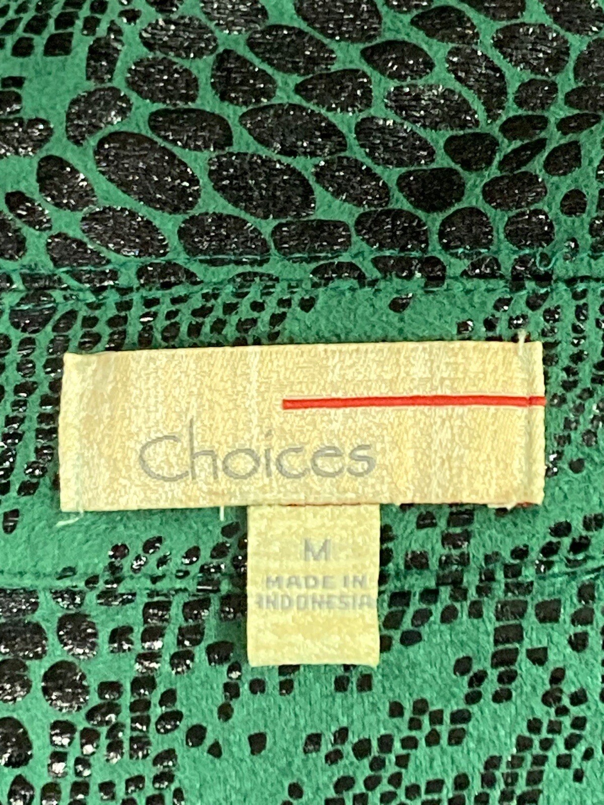 Choices Women’s Size M Faux Snake Skin Jacket Green Black Pockets Full Zip Armpit to armpit 21” Total length 22” Measurements taken laying flat Excellent condition no rips or stains Smoke free pet free home