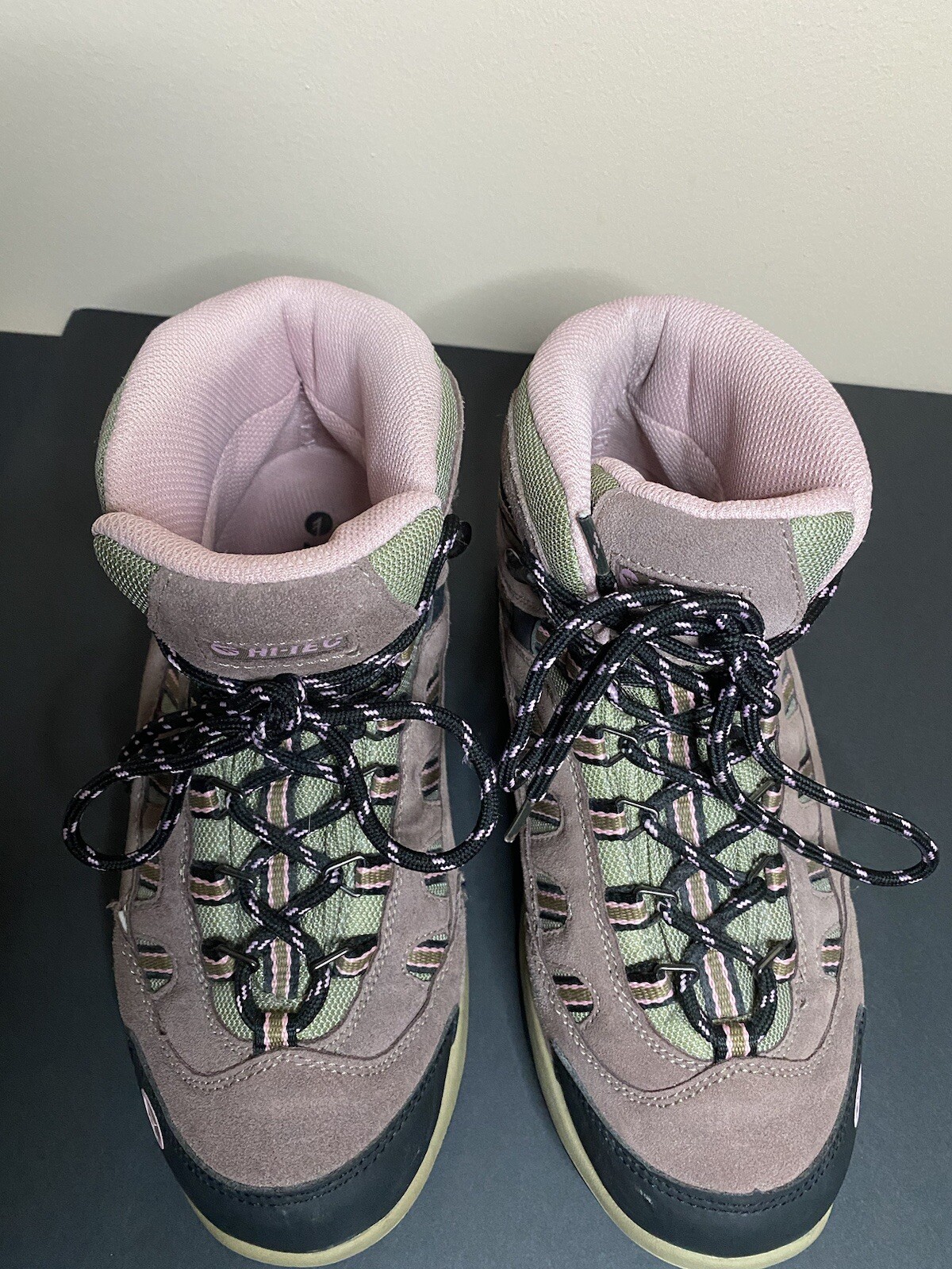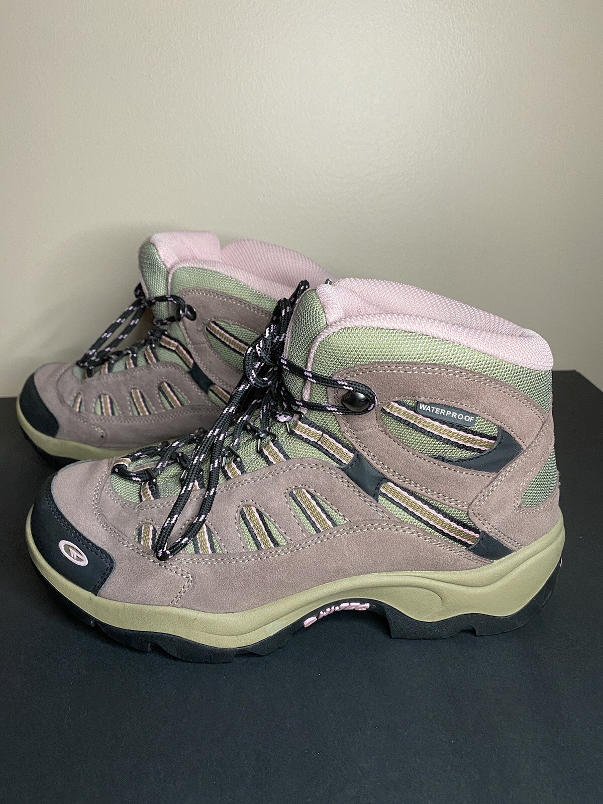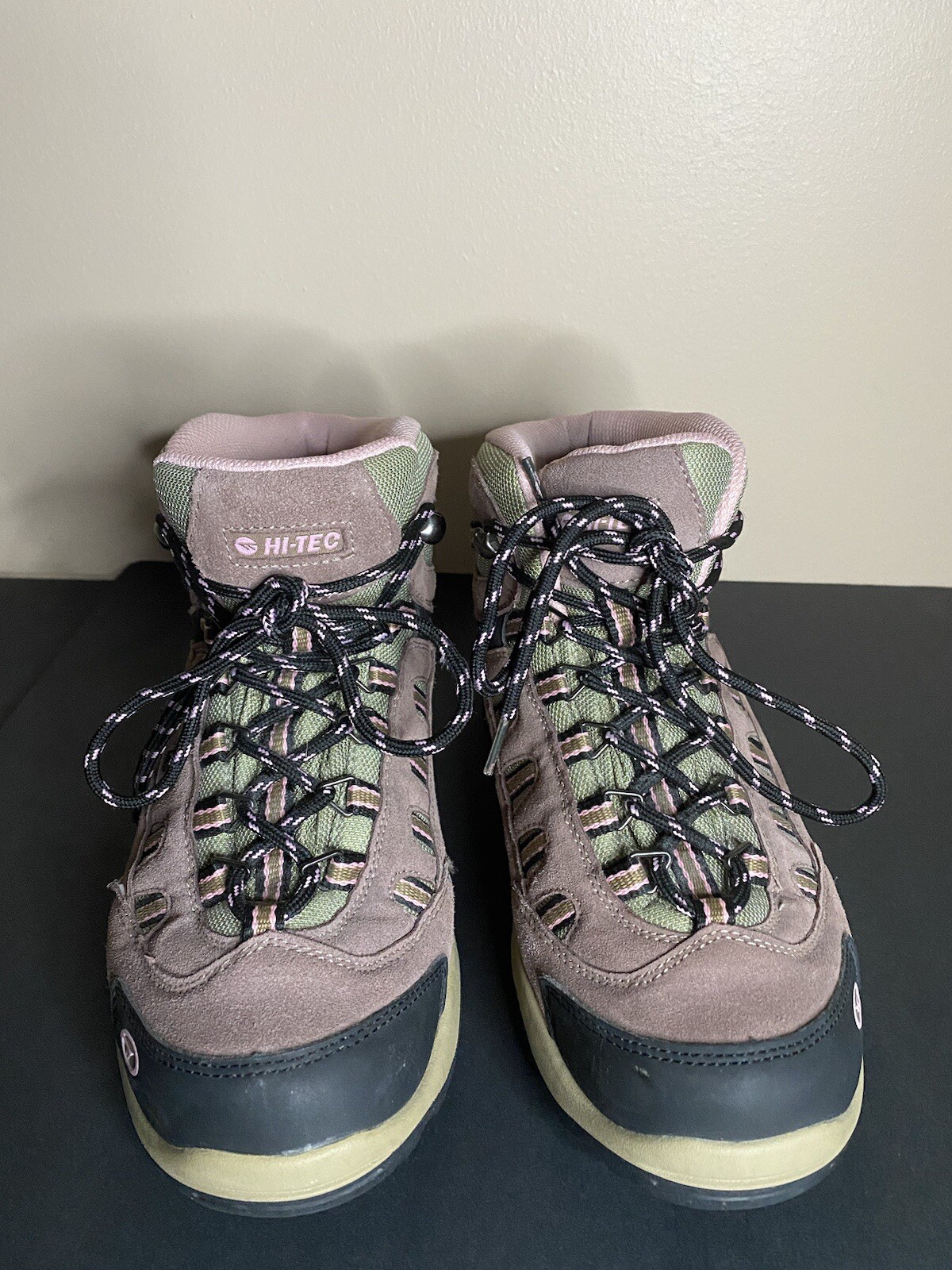 Women's Hi-Tec Bandera Mid-Rise Waterproof Hiking Boot in Dark Taupe/Viola Pink LIKE NEW CONDITION Features: ∙ Waterproof suede & high-performance mesh ∙ Padded collar ∙ Lace up closure for a snug fit with a steel shank ∙ MD Traction rubber outsole Size: 9 Preloved Condition-see pics Tags: pink gray brown hiking outdoors nature mountain durable terrain gear