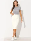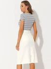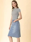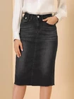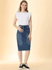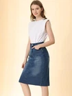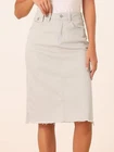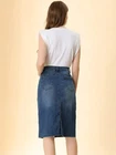 Product Description Allegra K Women's Jean Skirt Back Slit Raw Hems Denim Skirt Denim Skirt, An Essential Wardrobe Piece This Versatile Silhouette Pairs Well With Pretty Much Anything. The relax fit knee length jean skirts is suitable for dating, business, holiday and daily wear, etc. 1 Classic Jean Skirts 2 Various Color Skirts Detail of Women's Fashion Denim Jean Skirts, Stretchy & Excellent Breathable Perfect Match All Kinds Of Tops - Classic Never Goes Out Of Style What is the length of the skirt? The skirt would be pass my knees. If you higher than 5’7", it would be knee length. Is there any raw hem around the bottom? We have updated our skirt, the new version already with the raw hem. Is the skirt straight? No. It looks like a straight skirt, but the one I got is flared Skirt.