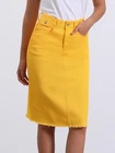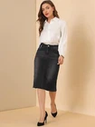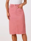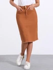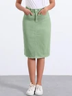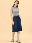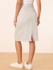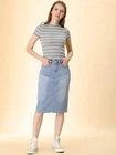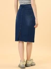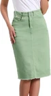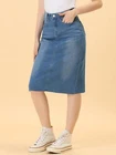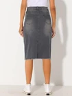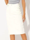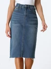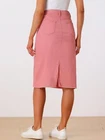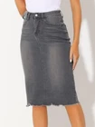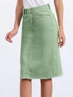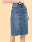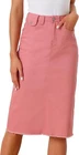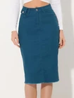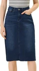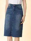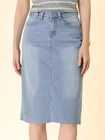 Love this jean skirt! The high waist and back slit give it a flattering fit, and the stretchy denim is so comfortable. Perfect for dressing up or down—works with sneakers or heels. The knee-length cut is just right, leaning slightly midi. Great quality, true to size, and pairs well with any top! A must-have for any wardrobe.