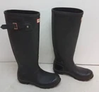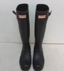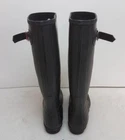 Crafted for both elegance and durability, these Women's Hunter Equestrian Black Rubber Boots are a staple for any fashion-forward wardrobe. Size 6, they wrap your feet in a sleek black rubber that effortlessly combats the elements while maintaining a chic aesthetic.The knee-high riding boot style is complemented by a comfortable polyester lining, ensuring your feet stay cozy. Versatile and timeless, these boots are suitable for numerous occasions, from casual outings to more formal equestrian events. A true blend of function and fashion, they are an impeccable choice for those who appreciate both style and practicality.
