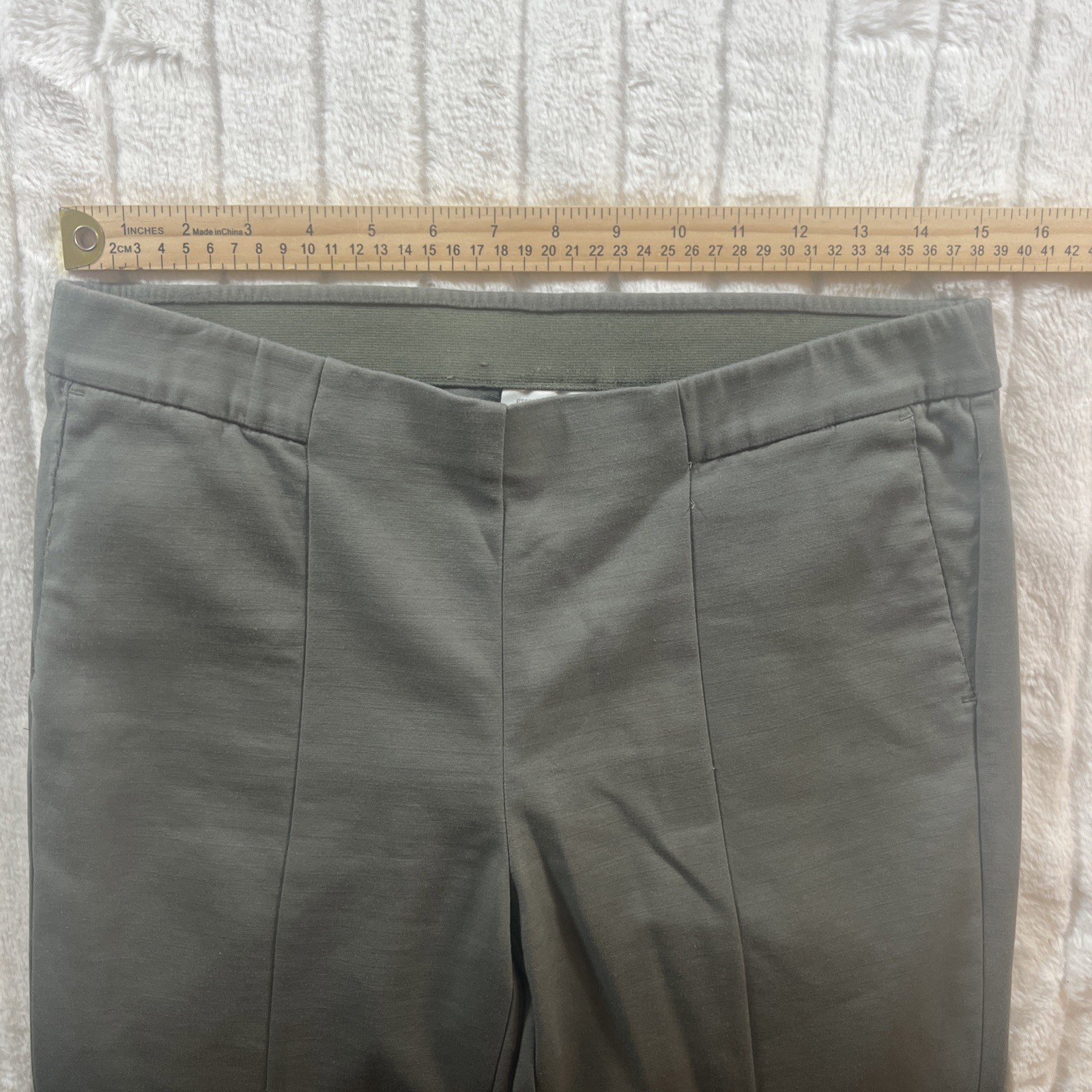 These Women’s J.Jill Green Waistband Stretch Pull On Essential Pants in size 6 Slim Ankle are a versatile and stylish addition to any wardrobe. The mid-rise, slim fit and ankle length make them perfect for a casual yet put-together look. With a comfortable pull-on closure and stretch feature, these pants are easy to wear and move around in. The classic green color and flat front design add a touch of sophistication to the overall ensemble. Perfect for everyday wear or dressing up for a special occasion, these pants are a must-have for any fashion-forward woman.