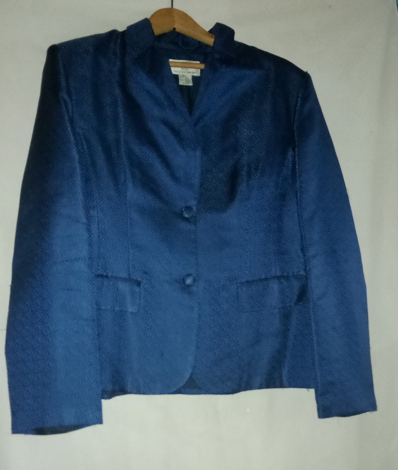 Crafted for discerning women, the XXL Jacket from the Hua Si Silk Collection exudes timeless elegance. The jacket features a luxurious silk blend outer shell in a serene shade of blue, paired with a comfortable rayon lining for a flattering drape. With its classic solid pattern and tasteful button accents, this basic jacket style is versatile for both business and social events. Attention to detail is evident in the jacket's design, with a short length that offers ease of movement and a regular fit that assures a polished silhouette. Long sleeves and a textured finish enhance its visual appeal, while the thoughtful blend of silk and rayon ensures both durability and a soft touch. This piece is a chic addition to any wardrobe, perfect for transitioning through fall, spring, or winter.