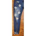 Elevate your denim game with these stylish women's cropped skinny jeans in size LG. The distressed and ripped jeans with the cute floral pattern adds a touch of edgy charm to these skinny jeans, making them perfect for casual outings or a night out on the town. The medium fabric wash complements the blue color, while the floral accents provide a feminine touch. These jeans are designed for women and feature a regular size type, skinny style, and a flattering fit. They are made of high-quality fabric and are perfect for those who want to make a statement with their clothing. These jeans are a must-have for any fashion-forward woman's wardrobe. Waist measures 28 in Rise 10 in Inseam 26.5 in Good pre-owned condition. Jeans are made in China and unbranded. The button closures just has the words Jeans. Add these cute cropped jeans to your wardrobe today!