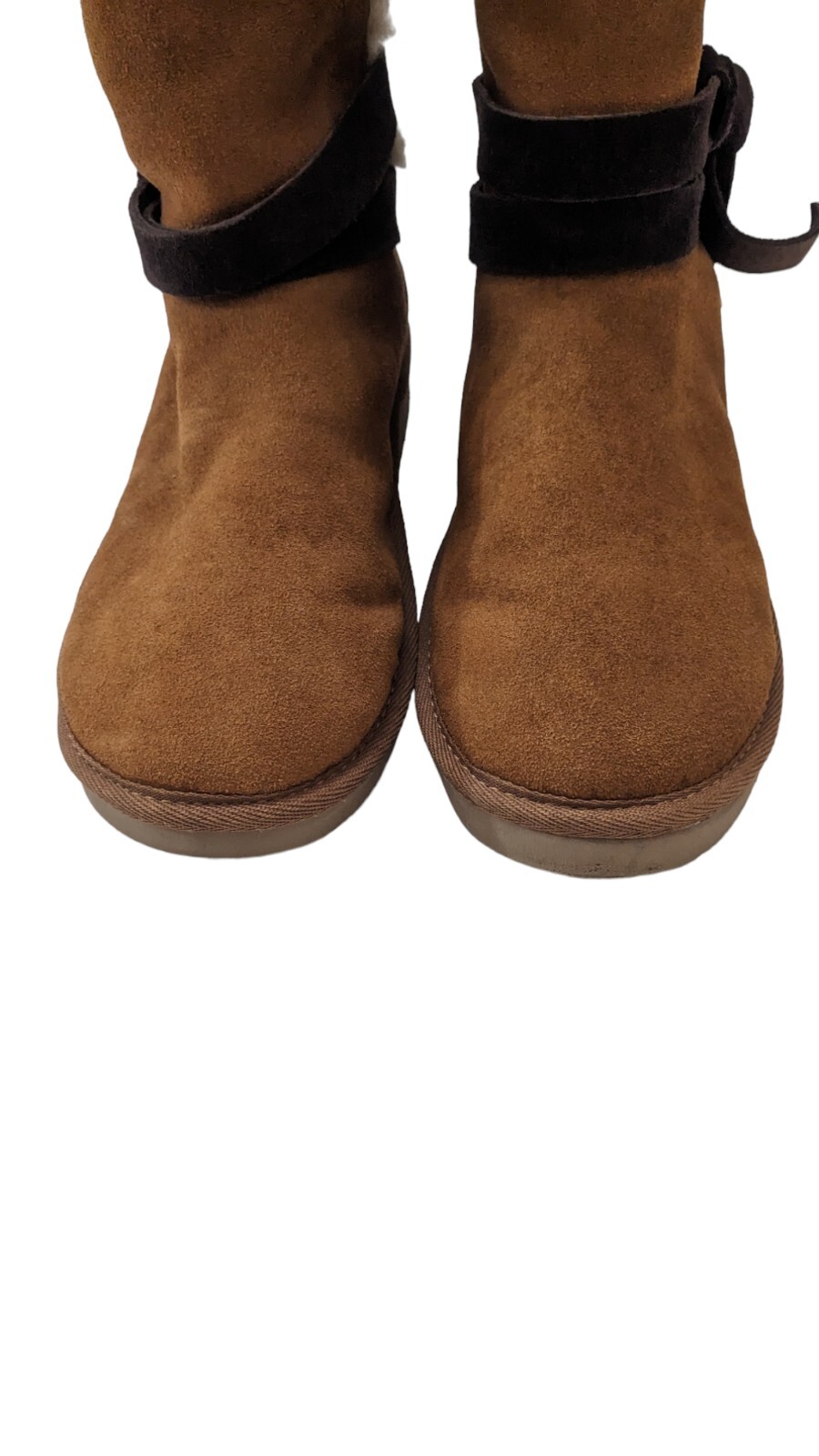 These beautiful KOOLABURRA by UGG boots are perfect for any woman looking for a stylish and comfortable addition to their shoe collection. Made of high-quality suede leather and featuring a convenient pull-on closure, these boots come in a gorgeous brown and tan color combination that will complement any outfit. With a UK shoe size of 6.5 and a US shoe size of 8, these boots are designed to fit perfectly and offer maximum comfort. They are ideal for any occasion, whether you're going out with friends or running errands. Buy these boots today and step out in style!
