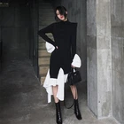 Womens High Neck Asymmetric Patchwork Long Sleeves Slim Knitted Sweater Dress Description: Color: Black Size:S-XL Materials : Polyester We are very honest seller from China,All the items are in stock and ship from China.we check each item carefully befor package it,we assure every buyer will be 100% happy with us,please enjoy your time for shopping from us! Shipping We ship items by China post registered airmail,the handing time is 1-2 working days.all the packages have a tracking number. Please contact us first if you don\\\\\\\\'t receive the items in time,we will check for you,and every year there are a lot of packages holded in Customs and post office During May\\\\\\\\'s Day,October and Christmas. 11-22 working days to US, UK,AU,Europe 20-35 working days to CA,Germany,France,Italy 35-45 working days to Russia,Brazil,Israel Feedback we hope every buyer are 100% happy with us and give us all 5 star positive feedback,we will give best feedback to you at the same time,if you are not happy or want to give us bad feedback,please contact us first,we can help you,and resolve all the problem. we appreciate your good feedback we will give all the buyers best service we will help you to resolve all the problem Return policy We check all the items before package,if any problem you don\\\\\\\\'t want it,please contact us at anytime,we will help you. we accept return and refund,or exchange as free. the payment will be refund to your paypal account include shipping fees,Please be aware the return shipping cost will be charged on your side. 30 days returning time,just take it easy Full refund or Free exchange the buyer pay returning fees ploaded in 1-3 working days by our post office,so you can track it on ebay or the Chinese post office websit,please contact us for help if you still don\\\\\\\\'t know how to track it,we will track it for you. Q: I have not received my items for a long time,what happend ? A:There are some reasons for this problem,Such as the bad weather,the vacation,and the Customs Strengthen security check, or the items had been hold in the post office,so please contact us first,we will check for you. Q: How to return the items?and Who will charge the fees ? A:please contact us first before you return the items,we will help you,and Please be aware the return shipping cost will be charged on your side ,and The re-send shipping cost will be charged on our side. please give me a message after you send it back,we will help you. Q: Do you combine the shipping fees ? A:Sorry,we don\\\\\\\\'t combine the shipping fees,but we can give you some discount when you purchase more items from us.thanks Questions and Answers Q: How to check the size ? A:Measure your foot length,and then check it in the table,to choose the right size,the error is in 0.5-0.8cm. Q: What should I do when I receive the wrong color or size items ? A:please don\\\\\\\\'t worry about this,and please contact us , we can help you to resolve this problem, Q: Do you have a tracking number and How to track it ? A:Yes,we have a tracking number and add it to ebay websit in 24 hours,the tracking info will be u