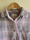 Women's L L Bean Pink Gray Plaid Button-Up Long Sleeve Sz M Blouse 100% Cotton