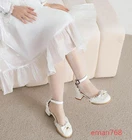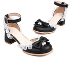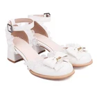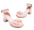 Women's Block Heels Bowknot Pearl Decor Lace Shoes Formal Casual Girls Sandals
