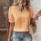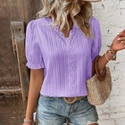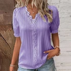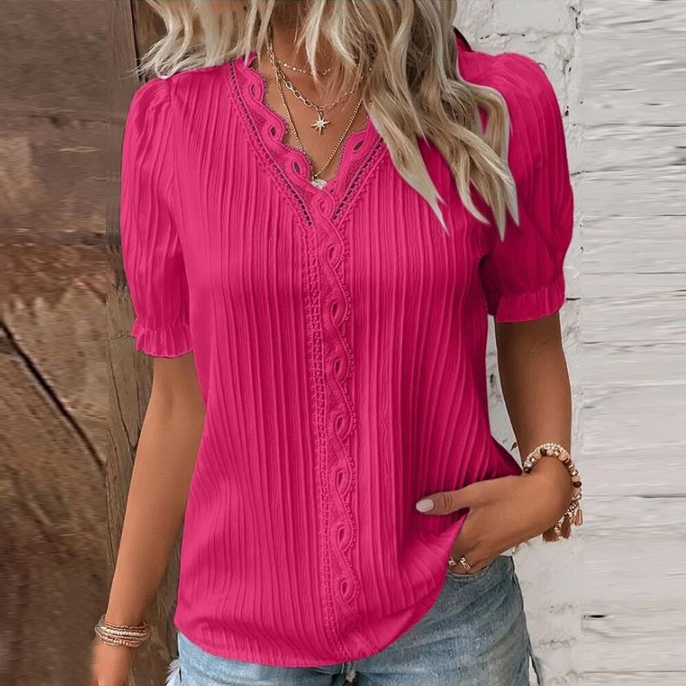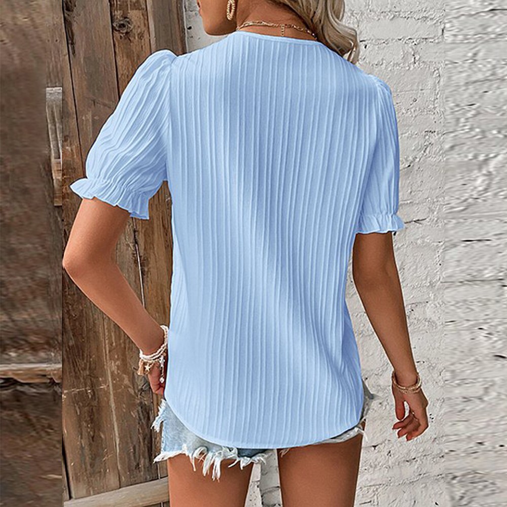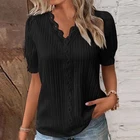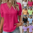 Product Features: Sleeve Length:Short Sleeve Sleeve Type:Regular Neckline:V-Neck Material:Polyester Fabric Type:Woven Pattern:Solid Closure:Pullover Occasion:Elegant fashion Accents:Hollow Out Season:Summer Strap Type:Regular Department:Women Size Type:Regular Collar Style:V-Neck Theme:Holiday Style:Basic Type:Blouse Fit:Classic Clothing Length:Regular Package Content: 1 x Top About This Item(We aim to show you accurate product information) 1.The Real Object May Exist Slightly Colors Differences Compared To Images As Different Computers Display.Caution If Minding,Thanks. 2.There Might Be A Manual Measuring 1-3 cm Error.Sorry For Any Inconvenience(note 1cm=0.39inch) . 3.Please Prevail On Real Item, Model Images For Reference Only. 4.Attention!!!Please check the size chart carefully before placing the order. Thanks for your understanding. Size C hart: Size-Details Tag Size UK Size EU Size US Size Length Bust cm inch cm inch S 6 34 4 66 25.98 96 37.80 M 8 36 6 67 26.38 100 39.37 L 10 38 8 68 26.77 106 41.73 XL 12 40 10 69 27.17 112 44.09 2XL 14 42 12 70 27.56 118 46.46 3XL 16 44 14 71 27.95 124 48.82 Sleeve Length:Short Sleeve Sleeve Type:Regular Neckline:V-Neck Material:Polyester Fabric Type:Woven Pattern:Solid Closure:Pullover Occasion:Elegant fashion Accents:Hollow Out Season:Summer Strap Type:Regular Department:Women Size Type:Regular Collar Style:V-Neck Theme:Holiday Style:Basic Type:Blouse Pattern Them:Other Fit:Classic Features:NO Clothing Length:Regular Copyright © 2022 Tongtool You may also like