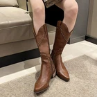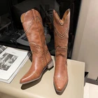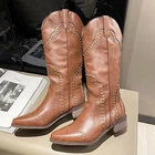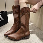 A STUNNING NEW BOOTS Cowboy Style: Featuring a classic cowboy design, inspired by Western fashion, adding a touch of rustic charm to your outfit. Studded Details: Decorated with metal or embellished studs, these boots showcase stylish and eye-catching accents that enhance their overall aesthetic. Mid Calf Height: Designed to reach the mid-calf, these boots offer a balanced and versatile height. Pointed Toe: Pointed toe shape, adding a sleek and sophisticated element to their design while elongating the legs. Comfortable Fit: Designed with wearer's comfort in mind, these boots feature cushioned insoles and a supportive structure, ensuring comfort during extended wear. Durable Construction: Made with high-quality materials and craftsmanship, these boots are built to withstand daily wear and provide long-lasting durability. SPECIFICATION: Upper Material:Faux Leather Lining Material:Polyurethane Outsole Material:Rubber Heel Height:4cm/1.57'' (approx) Shaft Height:25cm/9.84'' (approx) Style:Cowboy Occasion:Casual,Holiday,Travel,Business,Party etc. Colour:Brown Season:Winter,Autumn,Spring Package Includes:A Pair Of Brand New Boots(without box) Browse Our Shop For More Fashion Shoes.Thank you for choosing us. We place great emphasis on the customer shopping experience. If you have any questions or issues before or after purchase, please do not hesitate to contact us. We will do our best to provide you with a satisfactory solution.
