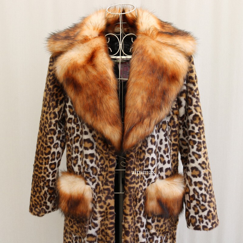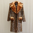 Winter New Leopard Print Knee Length Fur Coat Women Mink Fur Warm Long Coat